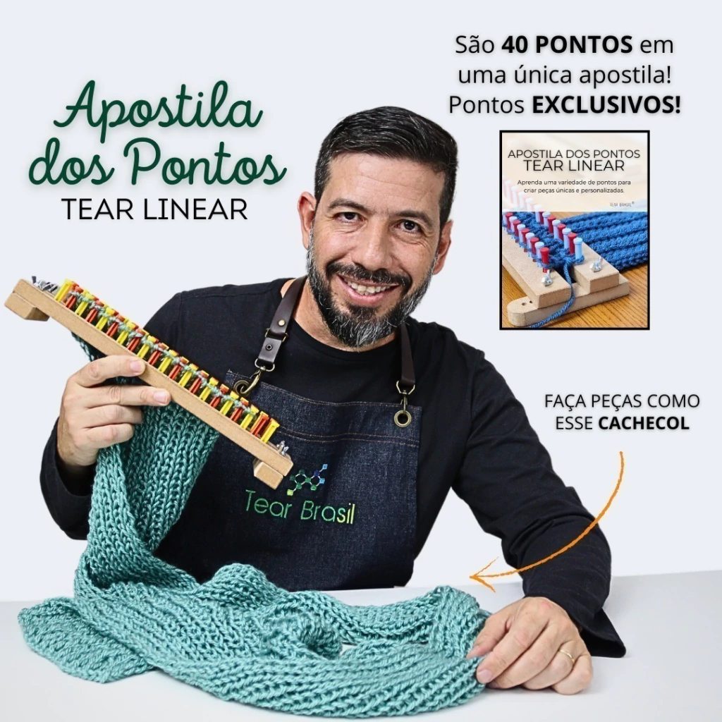 Com MAIS DE 40 PONTOS diferentes, este livro se revela um guia prático abrangente, cobrindo uma variedade de pontos que podem ser utilizados no tear linear de prego ou pinos. Destaca-se por sua abordagem realista, usando fios de duas cores (ida e volta) para facilitar a compreensão dos pontos, desde os básicos, como escama e zig-zag, até os mais avançados, como alpino e ponto equilíbrio. Além disso, oferece instruções detalhadas sobre o ponto inicial com ajuste, técnicas de diminuição e aumento, e o processo de remoção da peça do tear.