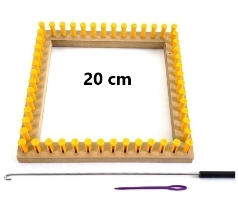TEAR DE PINOS PLÁSTICOS QUADRADO, são os modelos mais tradicionais para fazer tapetes, jogo americano e centro de mesas. A peça fica no tamanho do tear (diminui em torno de 10% - por exemplo; escolha o tear de 25cm caso queira a medida da peça próxima de 20cm).